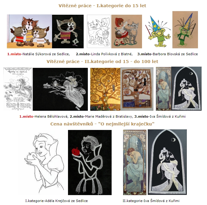 Hotovou práci jsme zaslali do Sedlic, a pak celé léto jsem čekala, jak to vše dopadne a jaké budou práce jiných dětí. Koncem srpna jsem se dočkala a na stránkách Sedlické krajky jsem pak měla možnost prohlédnout si práce jiných. Byla jsem překvapena, jak různě se dají upaličkovat postavičky z večerníčků.