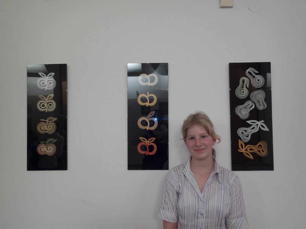 Společně s ostatními jsem si výstavu prohlédla, kde byly vystaveny díla z nové knihy i díla z předchozích knížek. Potom jsem si zakoupila do sbírky novou knížku s podvinky a nechala jsem si ji podepsat s věnováním od Lenky Malátové.