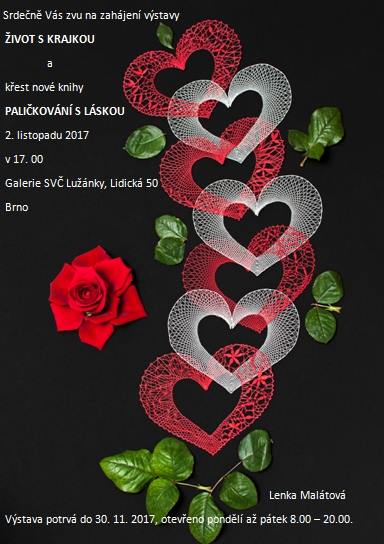 Lektorka paličkování Lenka Malátová sepsala a vydala další díl do série knih o paličkování, ke kterému uspořádala výstavu s křtem knihy. Nová kniha byla pojmenována „Paličkování s láskou“. Společně s krajkářkami z kurzů jsme byly pozvány na vernisáž výstavy a křest nové knížky, který se konal 2. listopadu v Brně - Lužánkách. Po úvodním slovu autorky byla kniha symbolicky omotána šálou Milči Eremiášové, která se nemohla zúčastnit vernisáže, a pokřtěna poklepáním krajkářských paliček. Křest knihy Lenky Malátové byl doprovázen hrou na kytaru. Krajkářky z kurzů poděkovaly Lence Malátové za její činnost, vedení kurzů a předávání zkušeností. Následně byl nový díl knihy umožněn k zakoupení i s autogramem.