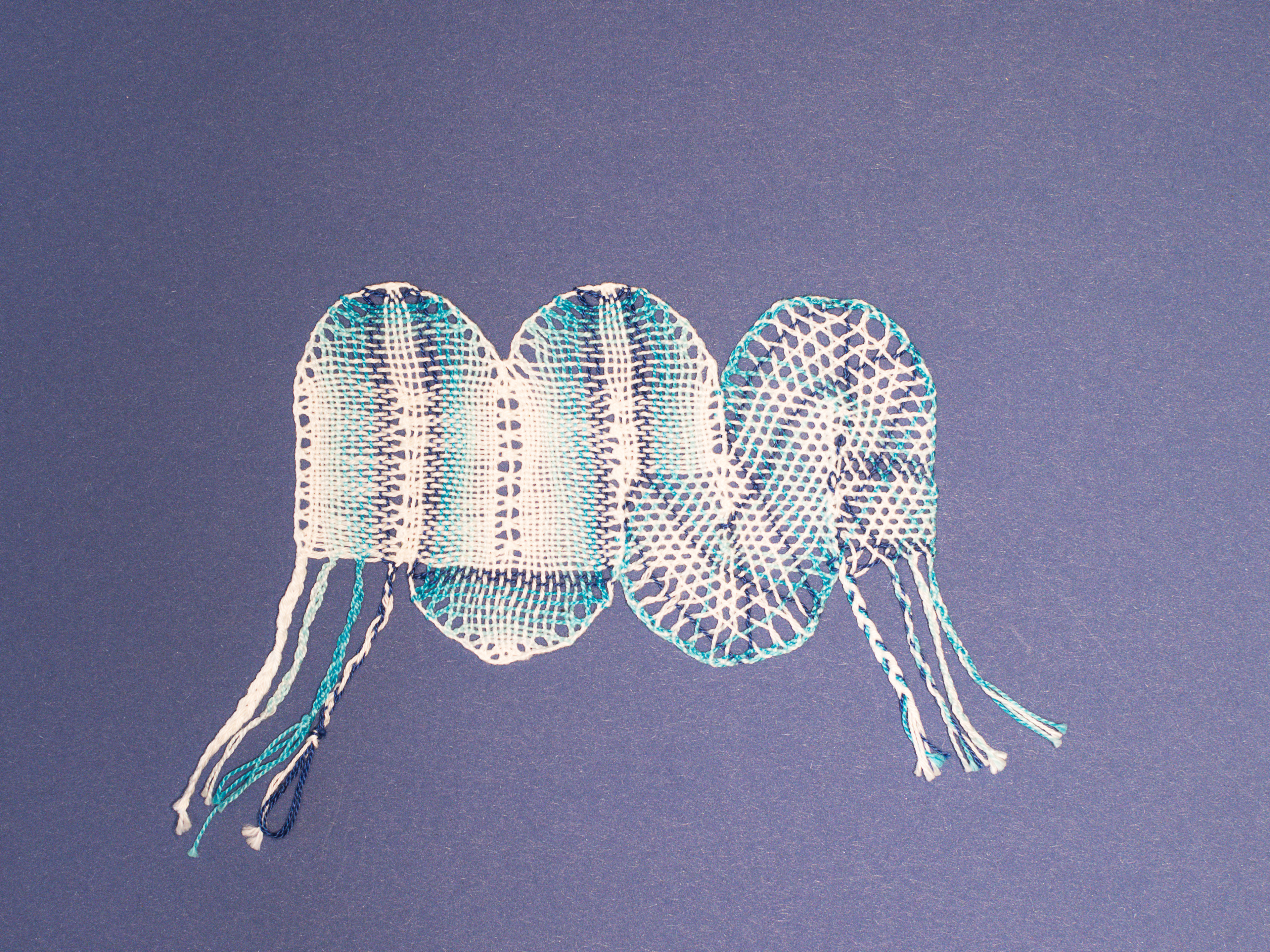 Na dalším kurzu od Lenky Malátové, kterého jsem se zúčastnila, byl kurz idrijské krajky. Idrijská krajka pochází ze Slovinska a je to typ páskové krajky. Na kurzu jsme se učili, jak paličkovat tuto krajku pomocí vzorníčků. Tento typ krajky je obtížný v tom, že se neutahuje, na vnitřní straně oblouků se nepíchají špendlíky a v minulosti se k přiháčkování používal místo háčku špendlík, což jsme si měli také vyzkoušet. Kurz se mi líbil, protože jsem si mohla vyzkoušet nový typ krajky.