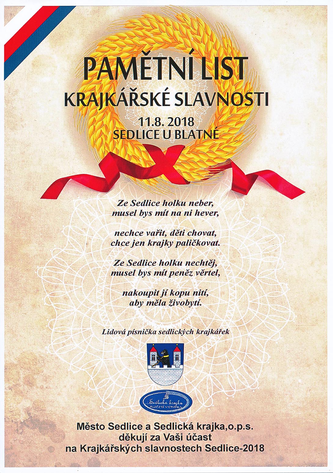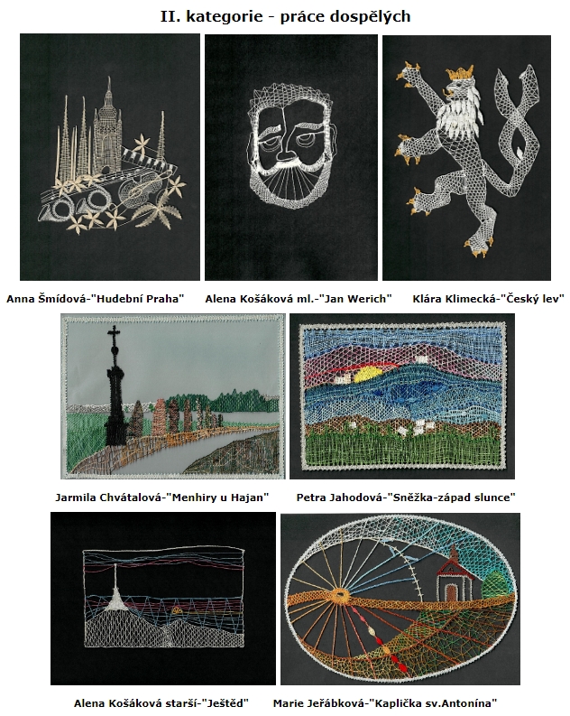 Na soutěž, kterou pořádali Sedlice u Blatné a které jsem se také chtěla zúčastnit, jsem měla na zhotovení jen dva měsíce do odeslání. Téma bylo zaměřeno stejně jako v Prachaticích ke stému výročí založení Československa. Mladší kategorie do 15 – ti let měla znění „Z našich luhů a hájů“. Když jsem uviděla název tohoto tématu, napadlo mě upaličkovat pět menších na sebe navazujících obrázků, které mají tvořit skladbu od Bedřicha Smetany z Mé vlasti, kde se jedna část jmenuje Z českých luhů a hájů, podobně jako téma soutěže. Každý obrázek má připomínat jednu část naší přírody, krajiny, luk, polí, lesů, živočichů, rostlin, prostě všechno, co je u nás krásné. Všechny obrázky měly být propojeny pěti linkami, které tvoří hudební osnovu skladby. První obrázek začíná houslovým klíčem, který má také připomínat strom a vedle něho jsou motýlci a rozkvetlé kytičky jako noty. Druhý obrázek je hora Říp, symbol české země a na ní rotunda svatého Jiří. Pod horou je les a políčka. Každé políčko je jiné, protože se na každém pěstuje něco jiného. Pět linek jako osnova prochází jako proplétané přes políčka a jedna tvoří horu Říp. Další obrázek je luční a polní kvítí s klasy. Na předposledním obrázku jsou včeličky, úl a včelí plástve. Poslední obrázek má ukončovat celou skladbu. Obrázek je podobný prvnímu. Jsou na něm motýlci, kytičky a také podpis Bedřicha Smetany. Linková osnova je zakončená dvojitou čárou, jako bývá u skladeb. Všechny části obrázků byly dány do bílých rámečků a celé dílo bylo nazváno stejně jako cyklus Mé vlasti „Z českých luhů a hájů od Bedřicha Smetany“. Sice jsem měla v plánu udělat celkem osm obrázků, ale časově jsem stihla udělat pouze pět. Snad někdy dopaličkuji zbylé tři obrázky. Celé dílo získalo v Sedlicích třetí místo odborné poroty a zvláštní cenu od pořadatelů soutěžní přehlídky za výborné zpracování daného témata. Všechno mě moc potěšilo a byla jsem rád, že jsem dílo stihla včas udělat a odeslat. A co mi soutěž dala? Že se prostě dá všechno stihnout, když se chce a hlavně jsem se naučila navrhnout soubor obrázků.