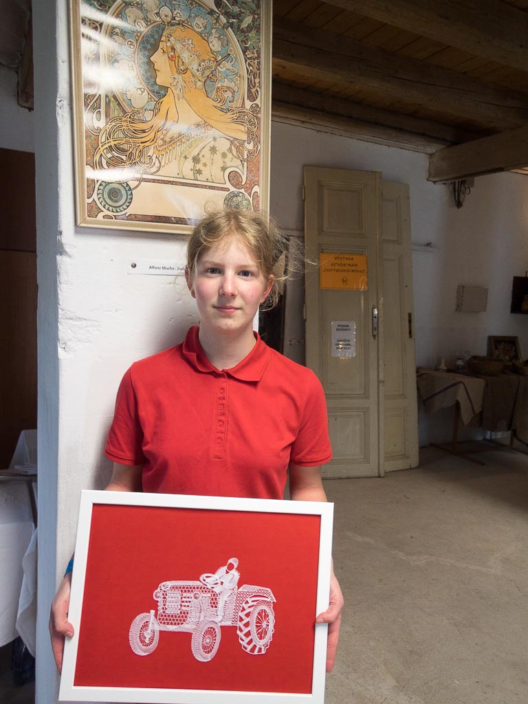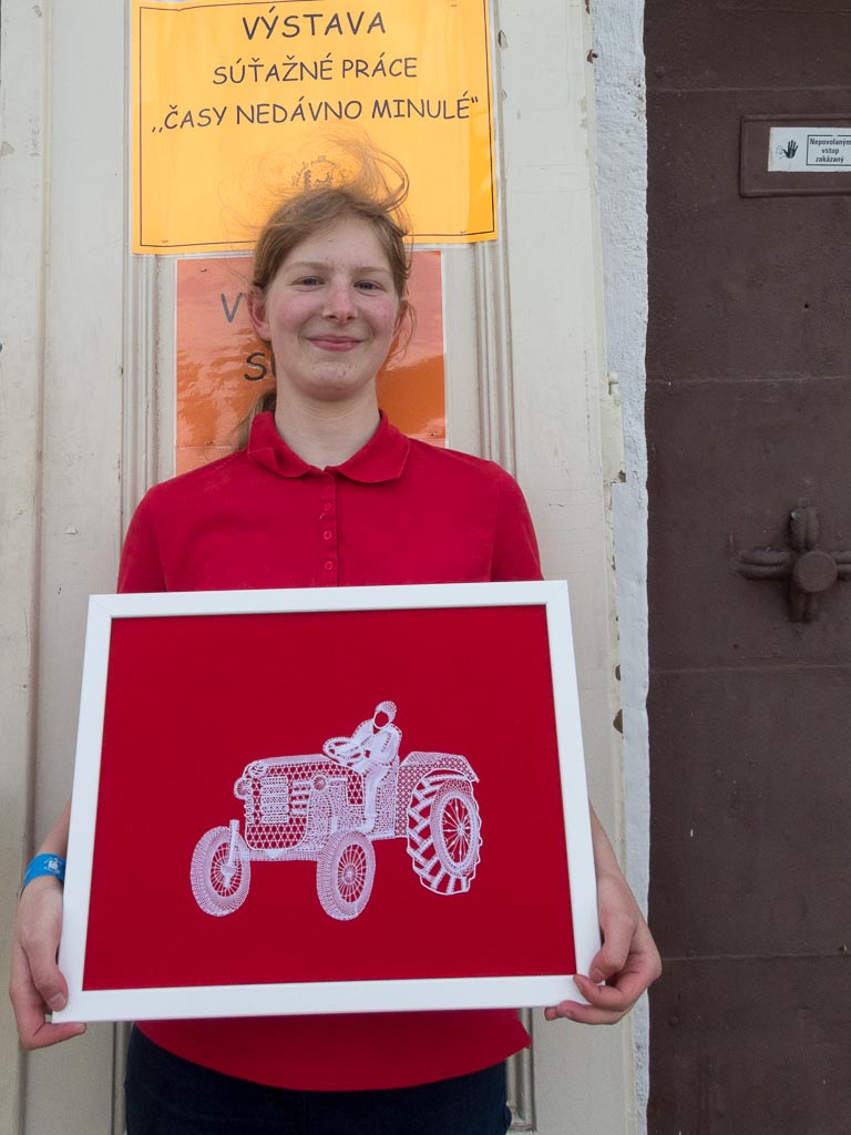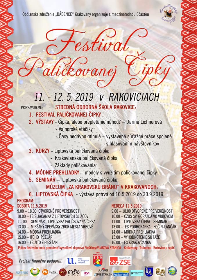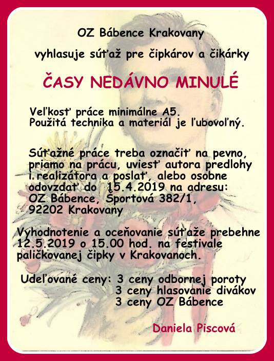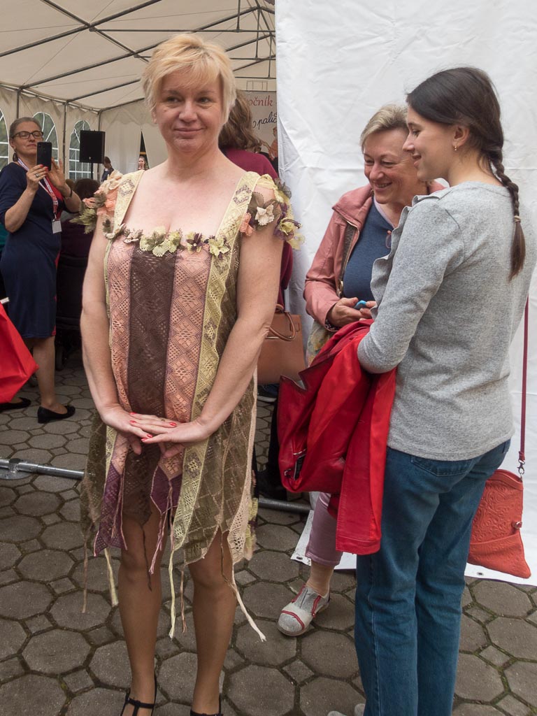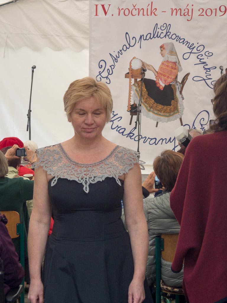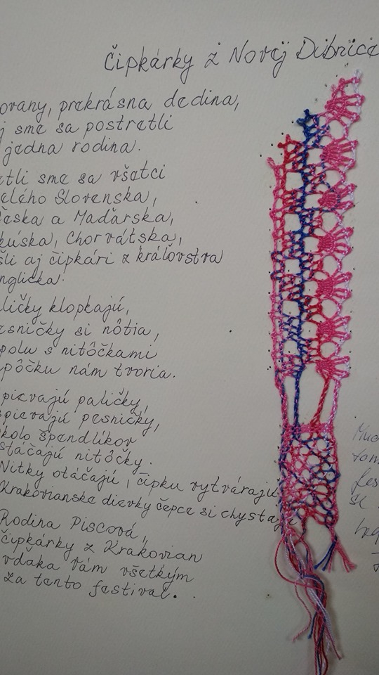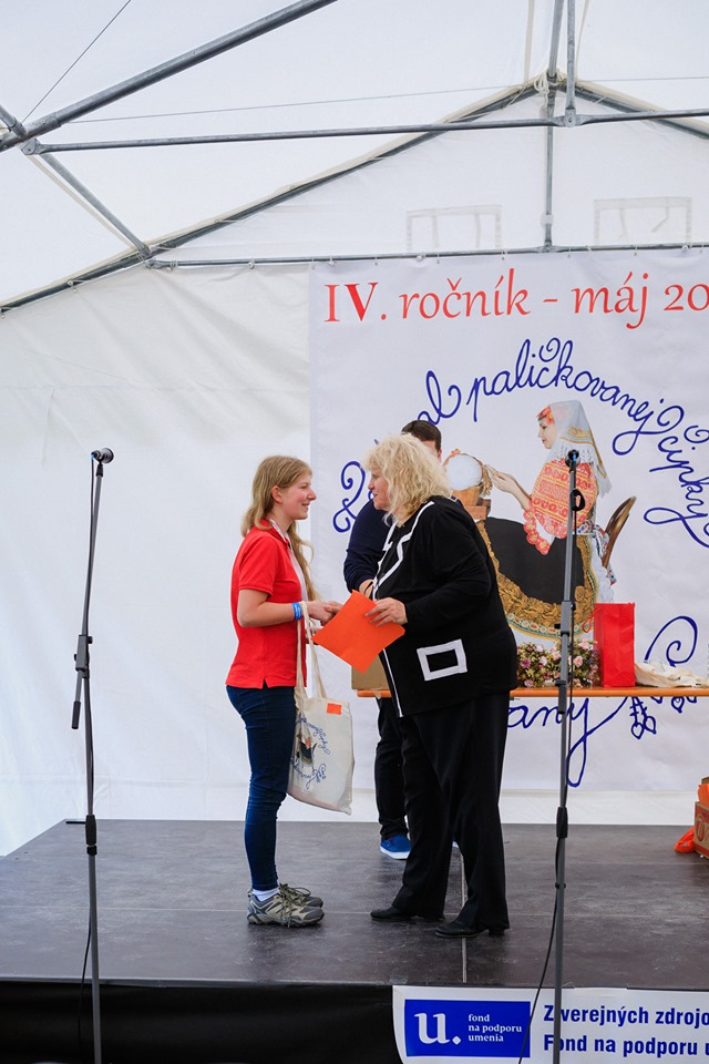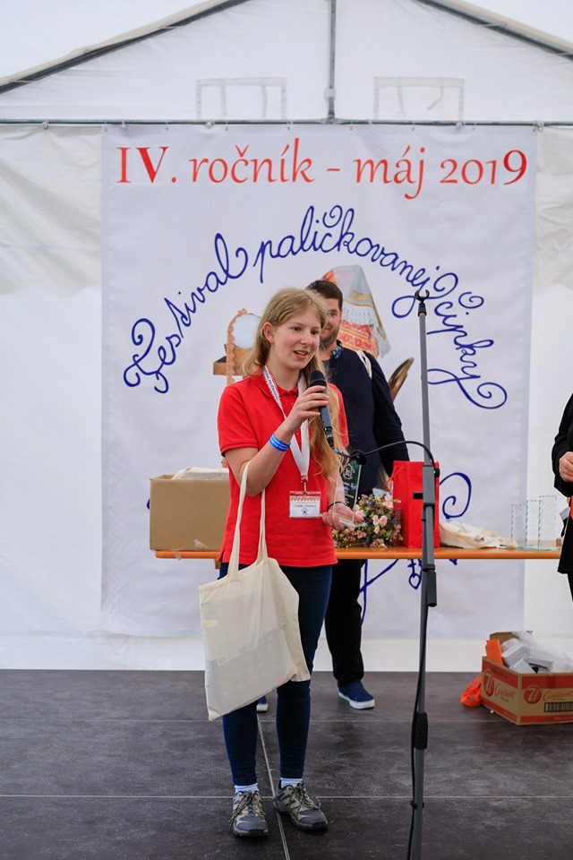 Jako předchozí roky, i letos se konal další ročník festival paličkované krajky v Krakovanech na Slovensku. Tentokrát jsem mohla opět jet a užít si festival. Jel se mou táta, kterému se předloni zalíbila místní krajina, a tak celý víkend si ji projížděl na kole. Já jsem mezitím byla na festivalu. Oba dva dny jsem se učila na kurzech slovenskou krajku. V sobotu to byl kurz krakovanské krajky, v neděli pak liptovská krajka. Krakovanská krajka je úplně odlišná od běžných ostatních krajek. Je hodně barevná a připomíná spíše hustou výšivku. Za celou sobotu jsem se naučila základ, jak se tato zajímavá krajka paličkuje a vytvořila jsem si pásek, vzorníček této krásné krajky. Liptovská krajka je bílá, dělaná z bavlnek, je tužená a má spoustu druhů. Naučila jsem se dva základní typy liptovské krajky, opět jsem si udělala pásky do vzorníčku. Při učení této krajky jsme si vypomáhali jednou barevnou bavlnkou, která nám říkala, jestli vzor paličkujeme správně. Po chvíli jsem díky pomocné bavlnce zjistila, že jsem udělala chybu, které jsem si ani nevšimla. Nakonec jsem postup pochopila a zvládla upaličkovat pásek, vzorníček této další krásné krajky. Oba dva kurzy se mi líbily a byla jsem moc ráda, že jsem se naučila princip dalších nových typů krajek. V mezičase kurzů jsem si prošla celý festival. Všude byli stánky, krásné krajky, nitě, podvinky… Přijeli opět nejen místní krajkářky ze Slovenska, ale i z Česka, Rakouska, Polska, Estonska, Maďarska, … Byla jsem se také podívat na soutěžní výstavu a další doprovodné výstavy a akce. Celý festival byl doplněn programem, jako byla moc krásná módní přehlídka, folklorní tance, písně a další představení. V sobotu jsem také potkala některé krajkářky z brněnských kurzů, které se přijely podívat s pořádaným zájezdem. Seznámila jsem se a popovídala si s různými krajkářkami. V neděli odpoledne jsem provedla tátu celým festivalem, který se také přišel podívat a zúčastnit se vyhodnocení soutěže „Časy nedávno minulé“. První cenu, jak odborné poroty, tak i v hlasování návštěvníků, vyhrála Antónia Sabová. Tato krajkářka se zúčastnila i v předchozích ročnících soutěže, kde také získala několik ocenění. Má skutečně krásná paličkovaná díla. Letos cenu získala za nádherné zpracování tří vějířů. Při vyhlašování druhých míst zaznělo s překvapením moje jméno. Jedna cena byla od odborné poroty a ta druhá od hlasování návštěvníků. Byla jsem ráda, že jsem si mohla ceny převzít osobně. Poté jako minulým rokem, tak i letos, byli oceněni krajkáři a krajkářky, kteří rozšiřují v podvědomí krajku. V neděli k večeru už byl konec festivalu. Škoda, že to tak rychle uteklo. Nakonec jsem pomohla s tátou uklidit židle, potom jsme se rozloučili a jeli jsme domů. Na konci festivalu udělal dokumentátor festivalu se mnou menší rozhovor. Těším se na další festival paličkované krajky v Krakovanech a na další ročník soutěže. Byl to nezapomenutelný zážitek, velmi přátelská atmosféra a všechno jsem si tam moc užila.