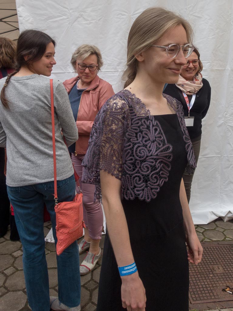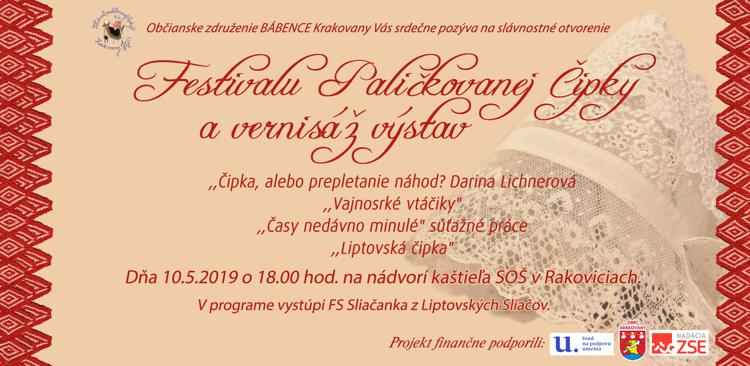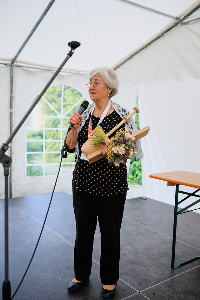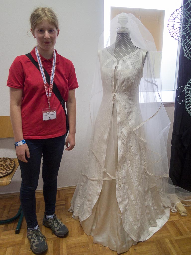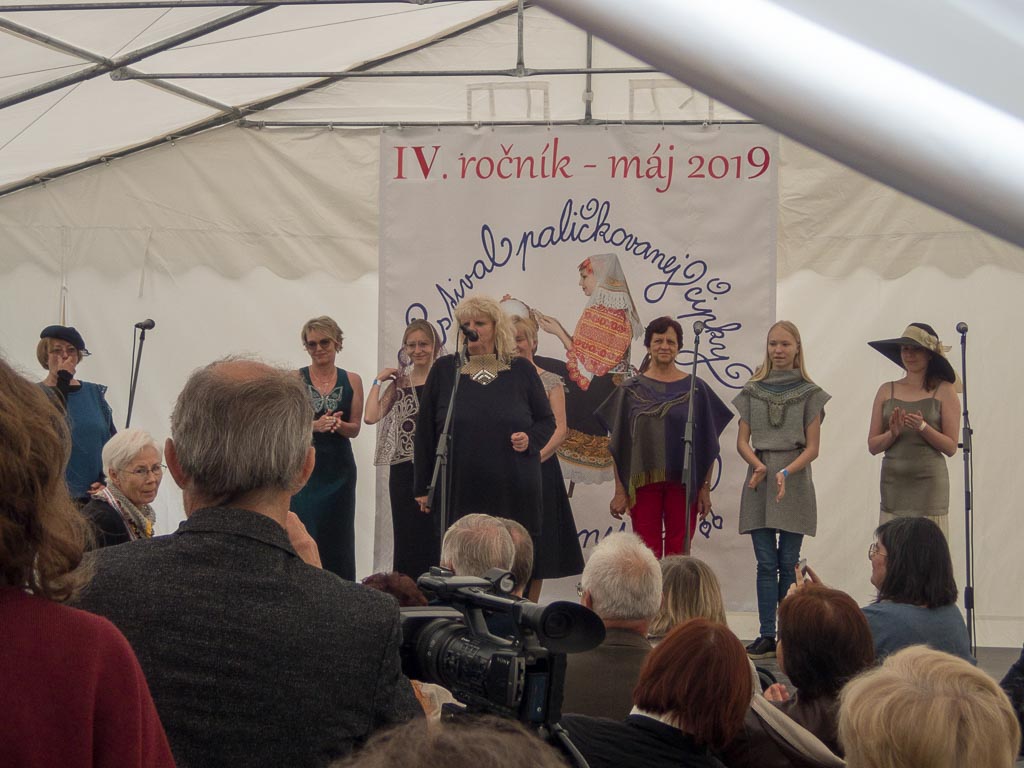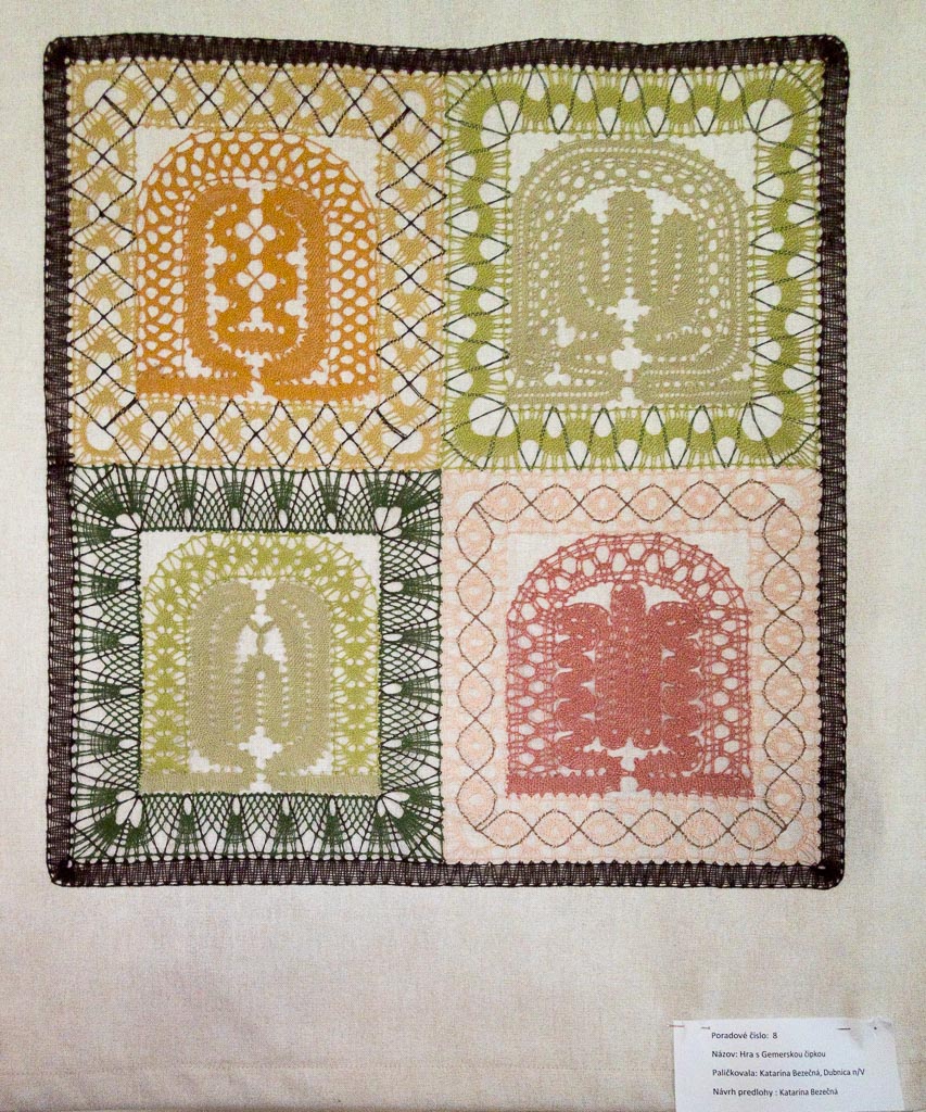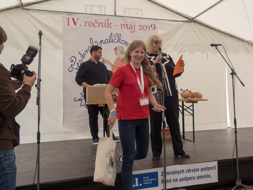 Jako předchozí roky, i letos se konal další ročník festival paličkované krajky v Krakovanech na Slovensku. Tentokrát jsem mohla opět jet a užít si festival. Jel se mou táta, kterému se předloni zalíbila místní krajina, a tak celý víkend si ji projížděl na kole. Já jsem mezitím byla na festivalu. Oba dva dny jsem se učila na kurzech slovenskou krajku. V sobotu to byl kurz krakovanské krajky, v neděli pak liptovská krajka. Krakovanská krajka je úplně odlišná od běžných ostatních krajek. Je hodně barevná a připomíná spíše hustou výšivku. Za celou sobotu jsem se naučila základ, jak se tato zajímavá krajka paličkuje a vytvořila jsem si pásek, vzorníček této krásné krajky. Liptovská krajka je bílá, dělaná z bavlnek, je tužená a má spoustu druhů. Naučila jsem se dva základní typy liptovské krajky, opět jsem si udělala pásky do vzorníčku. Při učení této krajky jsme si vypomáhali jednou barevnou bavlnkou, která nám říkala, jestli vzor paličkujeme správně. Po chvíli jsem díky pomocné bavlnce zjistila, že jsem udělala chybu, které jsem si ani nevšimla. Nakonec jsem postup pochopila a zvládla upaličkovat pásek, vzorníček této další krásné krajky. Oba dva kurzy se mi líbily a byla jsem moc ráda, že jsem se naučila princip dalších nových typů krajek. V mezičase kurzů jsem si prošla celý festival. Všude byli stánky, krásné krajky, nitě, podvinky… Přijeli opět nejen místní krajkářky ze Slovenska, ale i z Česka, Rakouska, Polska, Estonska, Maďarska, … Byla jsem se také podívat na soutěžní výstavu a další doprovodné výstavy a akce. Celý festival byl doplněn programem, jako byla moc krásná módní přehlídka, folklorní tance, písně a další představení. V sobotu jsem také potkala některé krajkářky z brněnských kurzů, které se přijely podívat s pořádaným zájezdem. Seznámila jsem se a popovídala si s různými krajkářkami. V neděli odpoledne jsem provedla tátu celým festivalem, který se také přišel podívat a zúčastnit se vyhodnocení soutěže „Časy nedávno minulé“. První cenu, jak odborné poroty, tak i v hlasování návštěvníků, vyhrála Antónia Sabová. Tato krajkářka se zúčastnila i v předchozích ročnících soutěže, kde také získala několik ocenění. Má skutečně krásná paličkovaná díla. Letos cenu získala za nádherné zpracování tří vějířů. Při vyhlašování druhých míst zaznělo s překvapením moje jméno. Jedna cena byla od odborné poroty a ta druhá od hlasování návštěvníků. Byla jsem ráda, že jsem si mohla ceny převzít osobně. Poté jako minulým rokem, tak i letos, byli oceněni krajkáři a krajkářky, kteří rozšiřují v podvědomí krajku. V neděli k večeru už byl konec festivalu. Škoda, že to tak rychle uteklo. Nakonec jsem pomohla s tátou uklidit židle, potom jsme se rozloučili a jeli jsme domů. Na konci festivalu udělal dokumentátor festivalu se mnou menší rozhovor. Těším se na další festival paličkované krajky v Krakovanech a na další ročník soutěže. Byl to nezapomenutelný zážitek, velmi přátelská atmosféra a všechno jsem si tam moc užila.