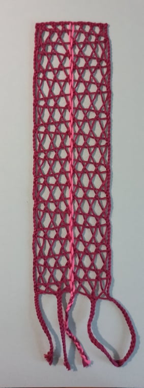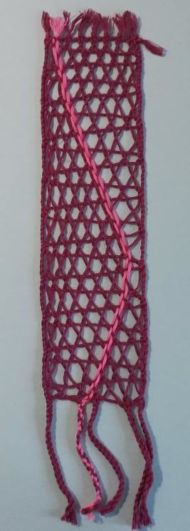 V sobotu se konal opět kurz idrijské krajky. Tentokrát jsme se učili ozdobné prvky - plátnové žilky v polohodu. Žilka v polohodu je jeden nebo více svislých párů prohozených vodivým párem plátnem. Ze začátku jsme paličkovali hodně zvětšené vzorníky, ve kterých jsme si to vyzkoušeli. Nejdříve jsme si zkusili v polohodu svislou plátnovou žilku. Ta se paličkuje tak, že půlku řady paličkujeme polohodem, pak vodivý pár stočíme a prohodíme plátnem svislý pár. Za plátnem vodivý pár netočíme a pokračujeme v polohodu. Svislý plátnový pár odložíme nahoru, aby se nám nezamíchal mezi ostatní svislé páry. Pod plátno si můžeme zapíchnout pomocný špendlík. Dalším ozdobným prvkem v polohodu je šikmá žilka. Ta se paličkuje tak, že na prvním svislém páru prohodíme plátno a doprostřed plátna si zapíchneme pomocný špendlík. Svislý pár za plátnem prohozený polohodem si odložíme nahoru a doděláme řadu polohodem. Odložený pár vezmeme a proložíme ho mezi páry plátny zpět na druhou stranu. Vodivým párem projedeme řadu zpátky polohodem a plátnový pár opět prohodíme plátnem. Následující svislý proložený pár musíme před polohodem stočit, ale vodivý pár po prohození plátna netočíme a pokračujeme v polohodu. Takto se paličkuje šikmá plátnová žilka v polohodu. Dá se paličkovat jak z levé strany na pravou, tak i opačně anebo se s ní dá i vyhrávat a dělat v polohodu obloučky a další zajímavé ozdobné prvky. Pro mě to bylo ze začátku obtížné, ale pak jsem to pochopila. Jsem ráda, že jsem byla na tomto kurzu, protože jsem se naučila úplně novou věc, na kterou bych asi sama jen tak nepřišla.