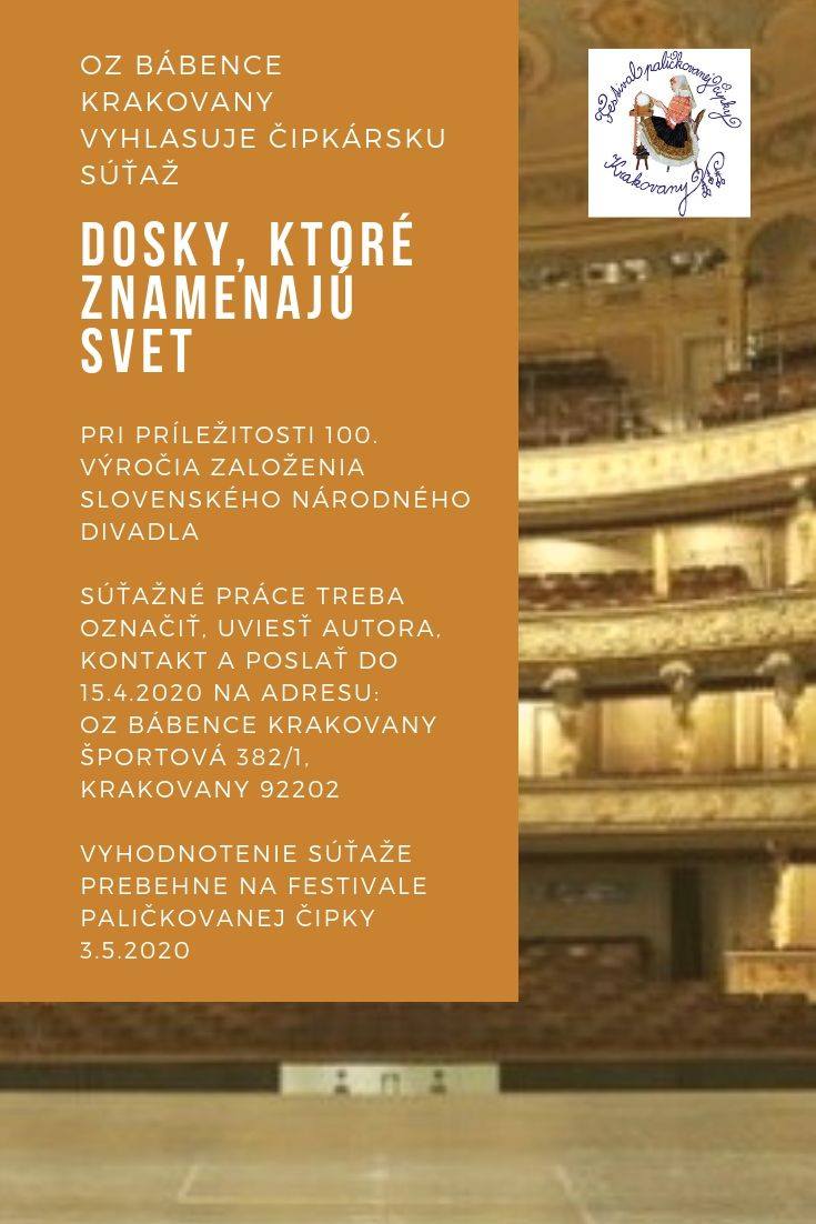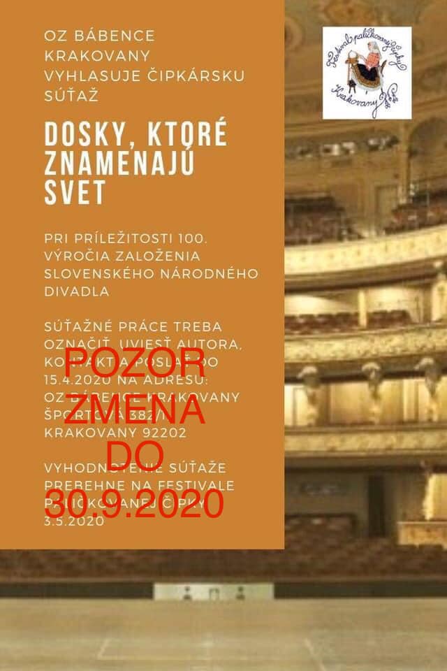Vyhodnocení a předávání cen soutěže „Prkna, co znamenají svět“, která byla součástí festivalu v Krakovanech se kvůli covidové situaci uskutečnila online přes facebook. Soutěžní práce byly vystaveny v muzeum Za krakovankú bránu v Krakovanech na Slovensku. Probíhalo zde hlasování návštěvníků. Kdo se nemohl přijít podívat do muzea na soutěžní práce, mohl hlasovat i online. Všechny soutěžní práce byly vystaveny na facebookové stránce s číslem, názvem práce a kdo práci paličkoval. Hlasovalo se přes email o první, druhé a třetí místo. Vyhlášení proběhlo online v neděli večer, kdy Matej Pisca vyhlásil výsledky soutěže. Výsledky soutěže „Dosky, ktoré znamenajú svet“ dopadly takto: